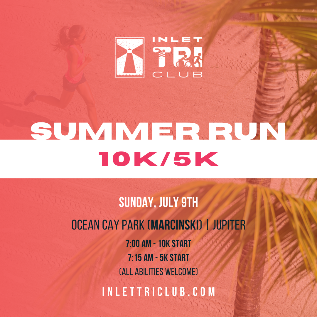 Join the club for a summer fun run! We’ll have two distances mapped out and led by a team member. The 10k distance will begin promptly at 7:00 AM, and the 5k distance will start at 7:15 AM. Meet us by the showers at Ocean Cay Park/Marcinski and bring hydration/nutrition as needed.