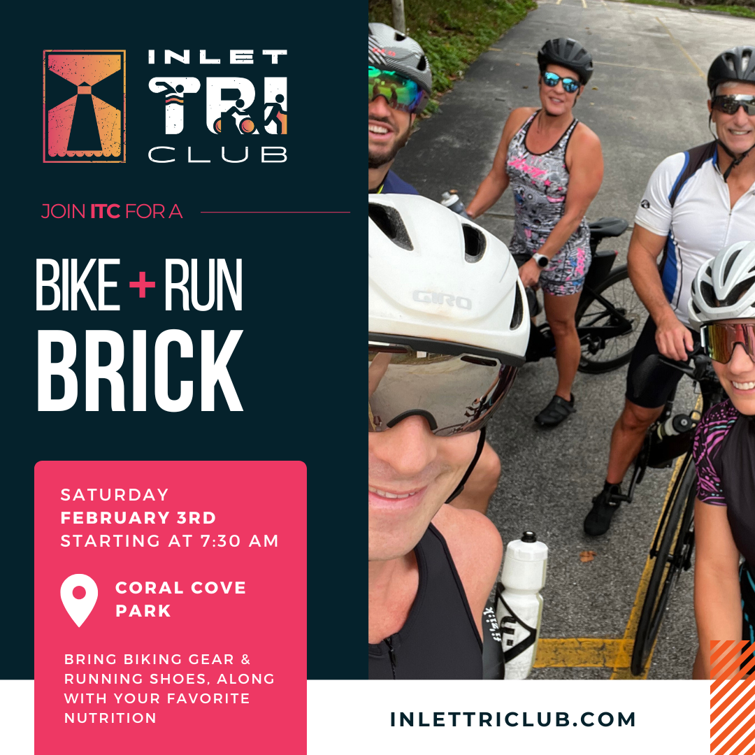 You’re invited to a brick training session being held on Sunday, May 21st at 8 am, leaving from Coral Cove Park on Jupiter Island.