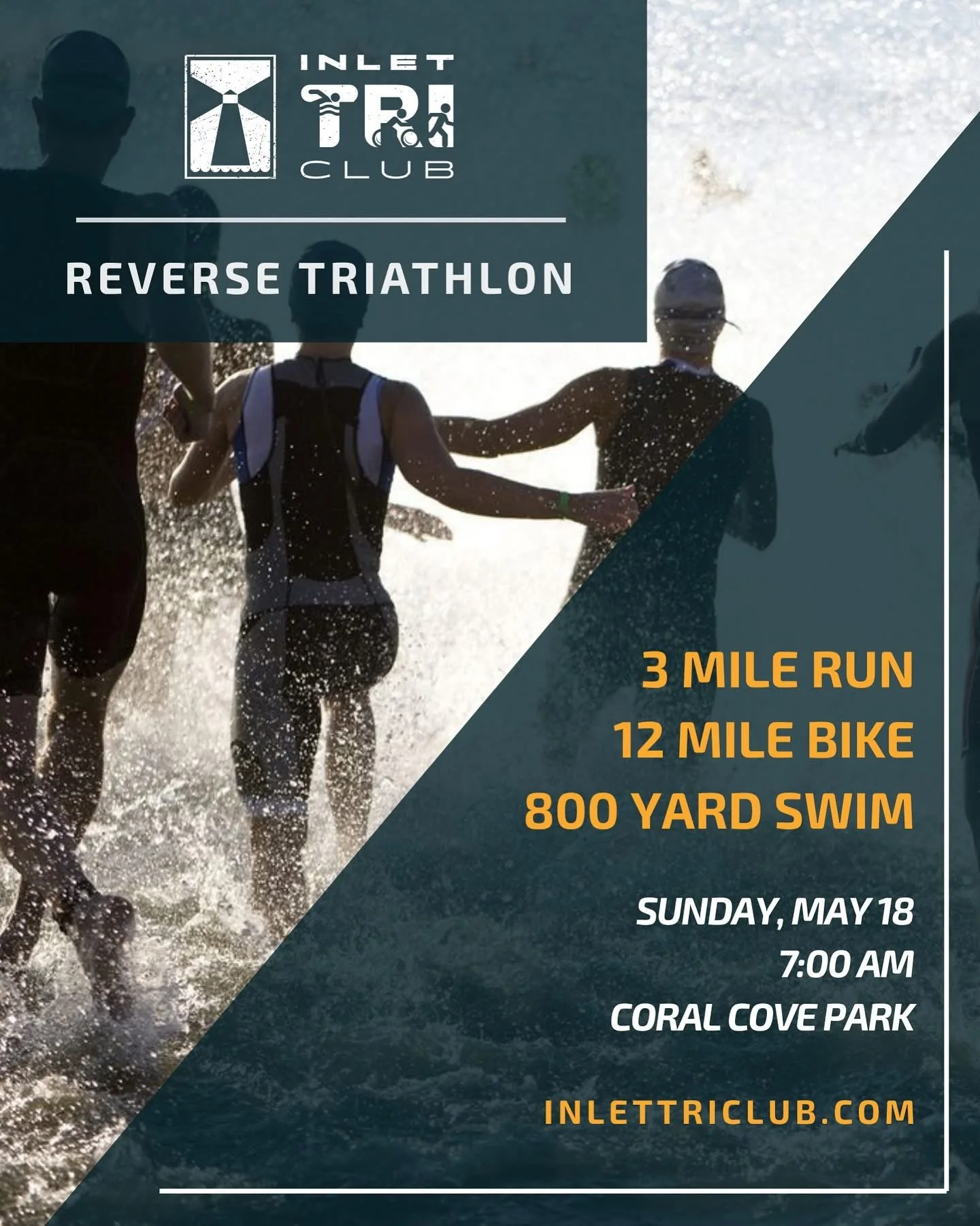 Let’s Mix It Up! Join Us for a Reverse Triathlon at Coral Cove 🏃♂️🚴♀️🏊♂️